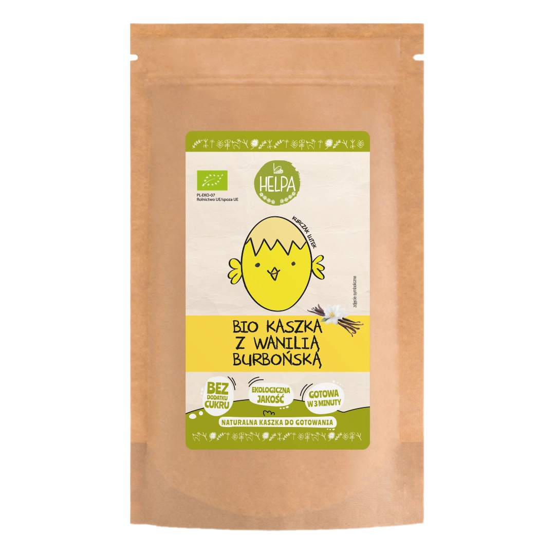 Kraj pochodzenia: ekologiczna kaszka jaglana - Ukraina; ekologiczna kasza manna orkiszowa - Polska; ekologiczna wanilia burbońska - Madagaskar.